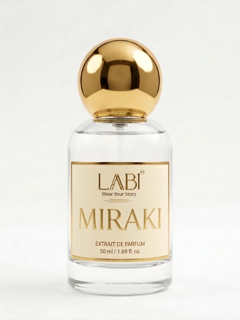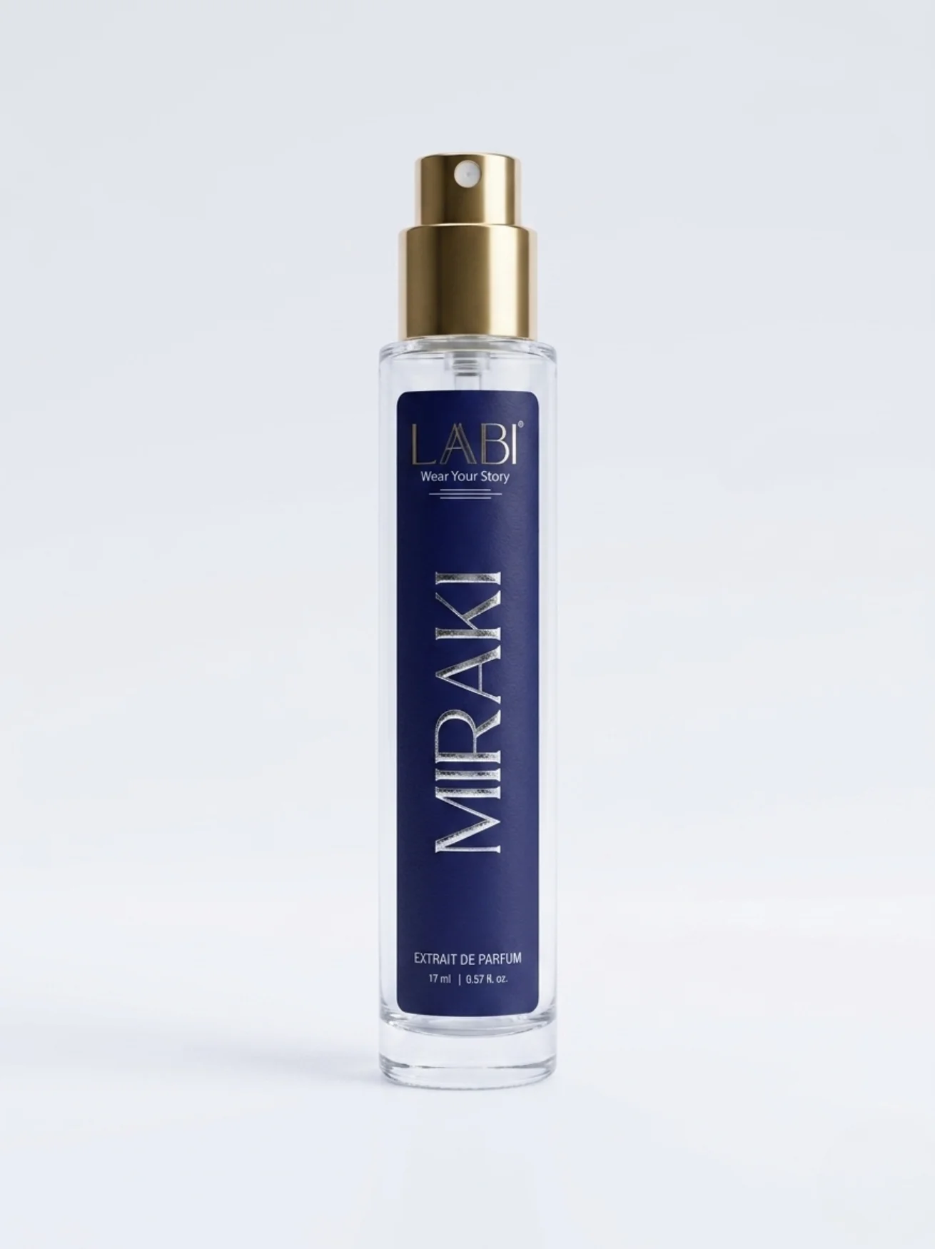 Miraki opens with a vibrant burst of citron, Calabrian bergamot, and Sicilian orange — crisp, sparkling, and instantly refreshing.The heart introduces neroli, ginger, and cinnamon, adding a subtle warmth and spice that balances the citrus brightness.