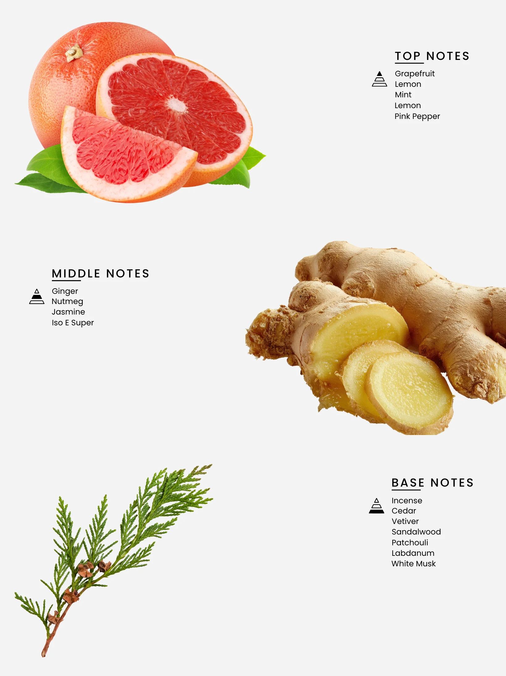 Top Notes: Grapefruit, Lemon, Mint, Pink Pepper Fresh, citrusy, and energetic.
